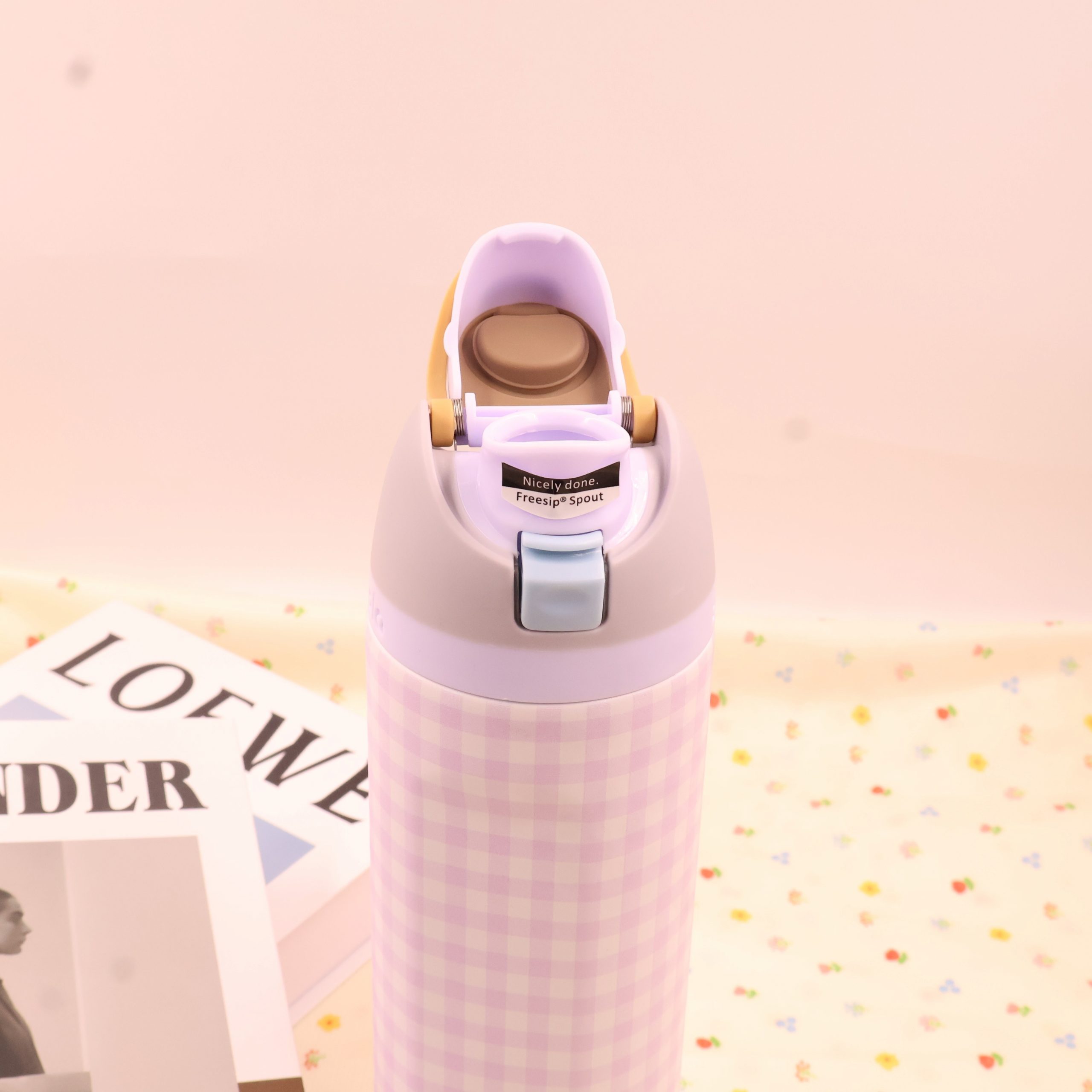 Owala 24oz Insulated Vacuum Water Bottle – Leak-Proof Portable Cup with Reusable Straw, Lightweight Tumbler,checkered pattern