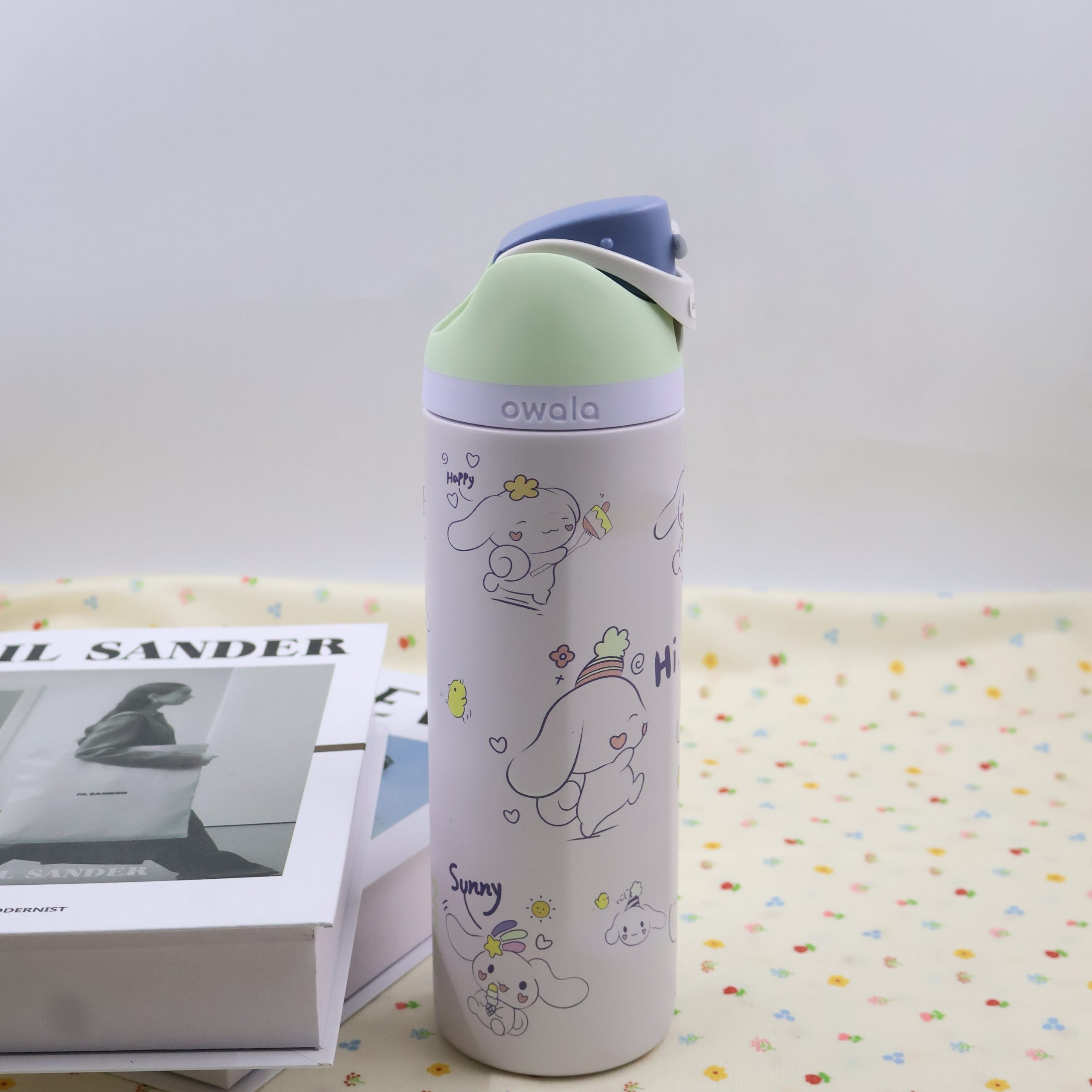 Owala 24oz Travel Water Bottle (Cinnamoroll Print) – Double Wall Insulated Stainless Steel Flask, Leakproof with Built-in Straw