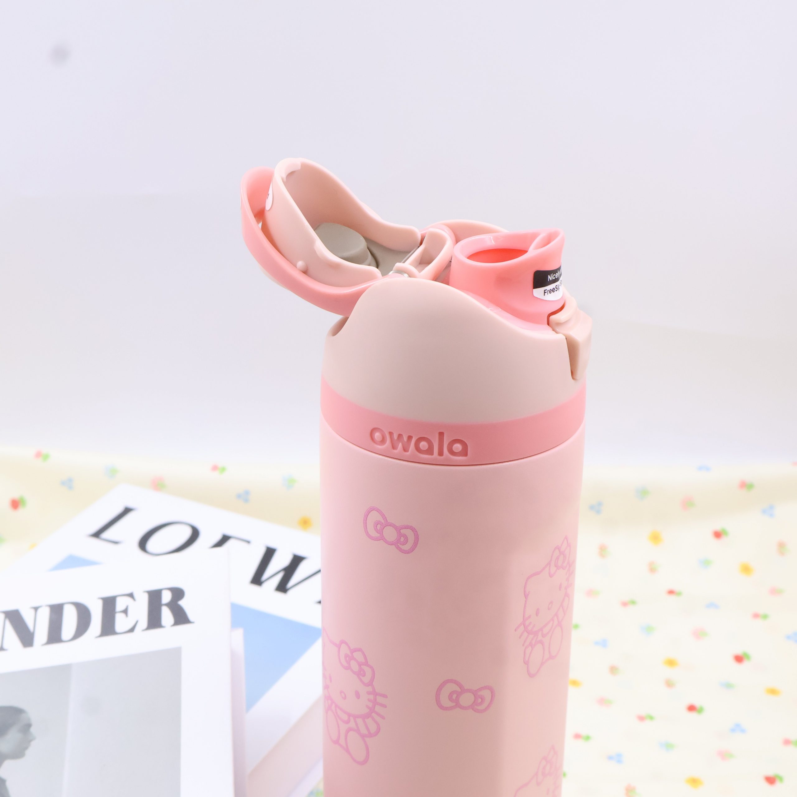 Owala FreeSip 24oz Water Bottle with Straw & Lid, Vacuum Insulated Stainless Steel Tumbler, Pink Bow Design, Leakproof for Women,Girls,Gym and School