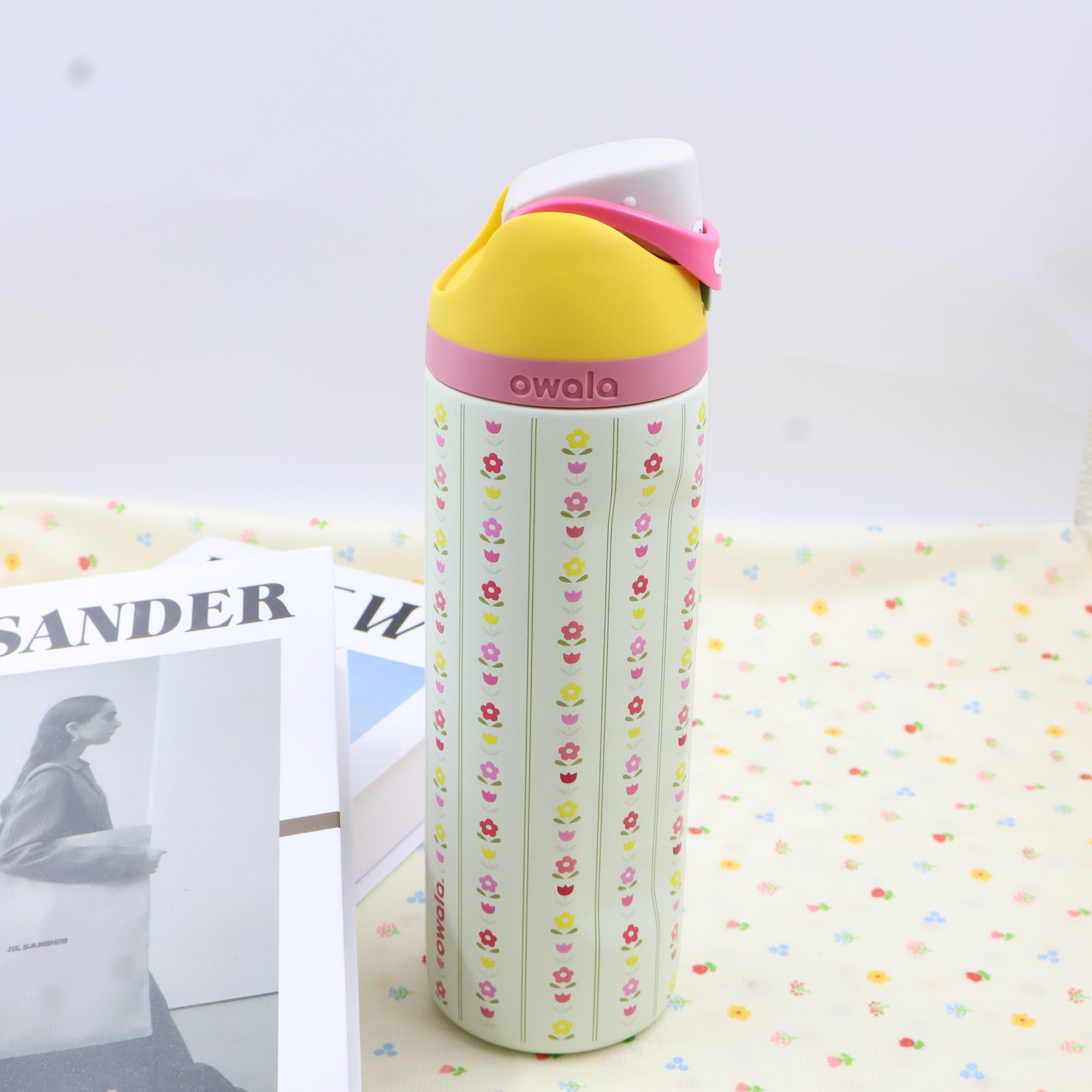 Owala Stainless Steel Tumbler with Straw Lid, Floral Insulated Water Bottle 24oz, Winter Jasmine (Jasminum Nudiflorum) Pattern, Gift for Women Travel Commute