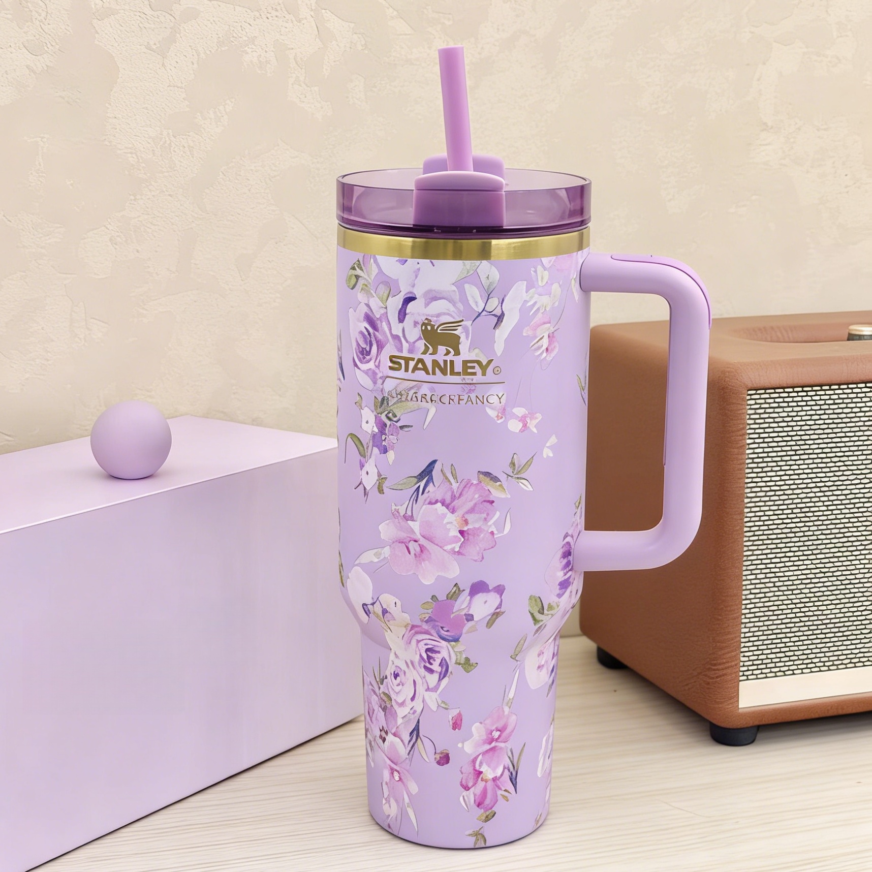Stanley 40oz Elegant Watercolor Flower Design Tumbler, Temperature Control & Travel-Ready (Lavender Purple with Watercolor Floral Print)