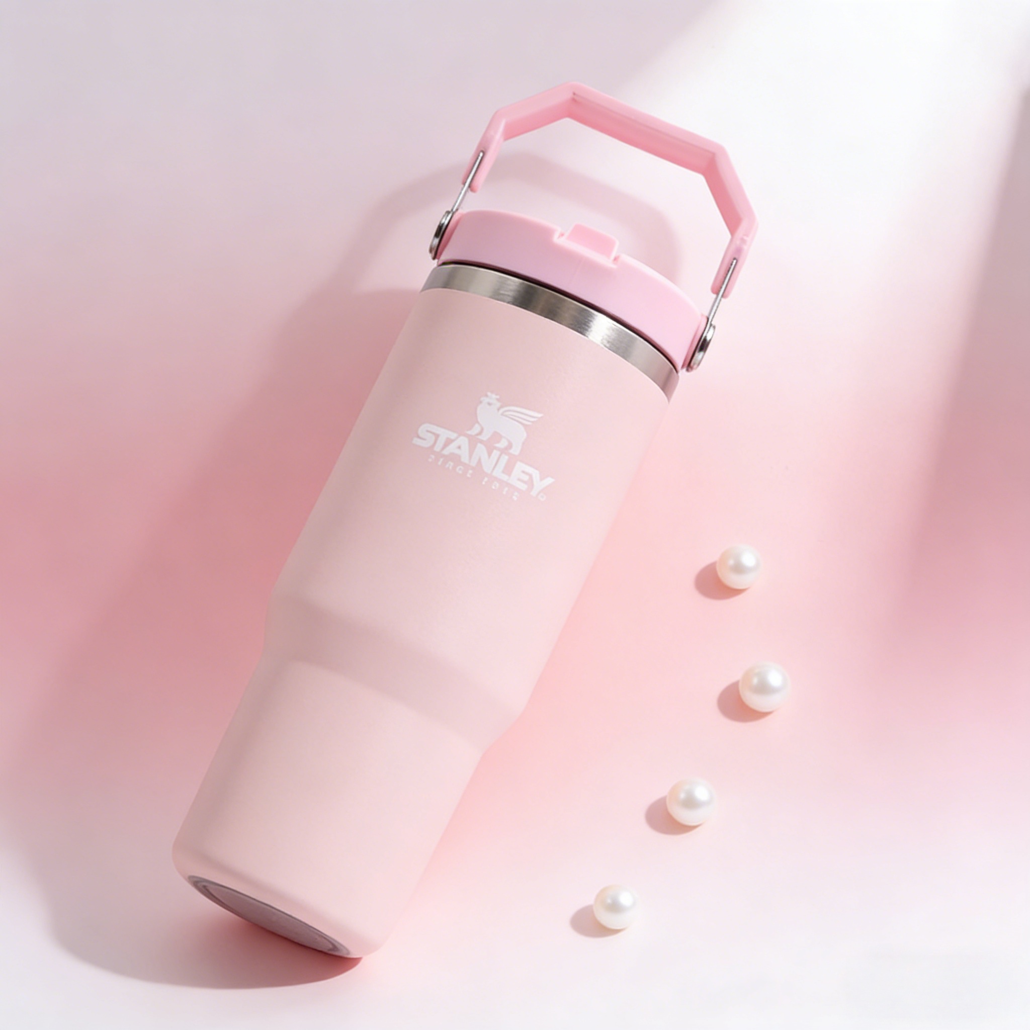 Stanley Insulated Cup with Handle – Stainless Steel Tumbler, Spill Resistant, Reusable for Daily Use & Outdoor, Pink Color Blocking